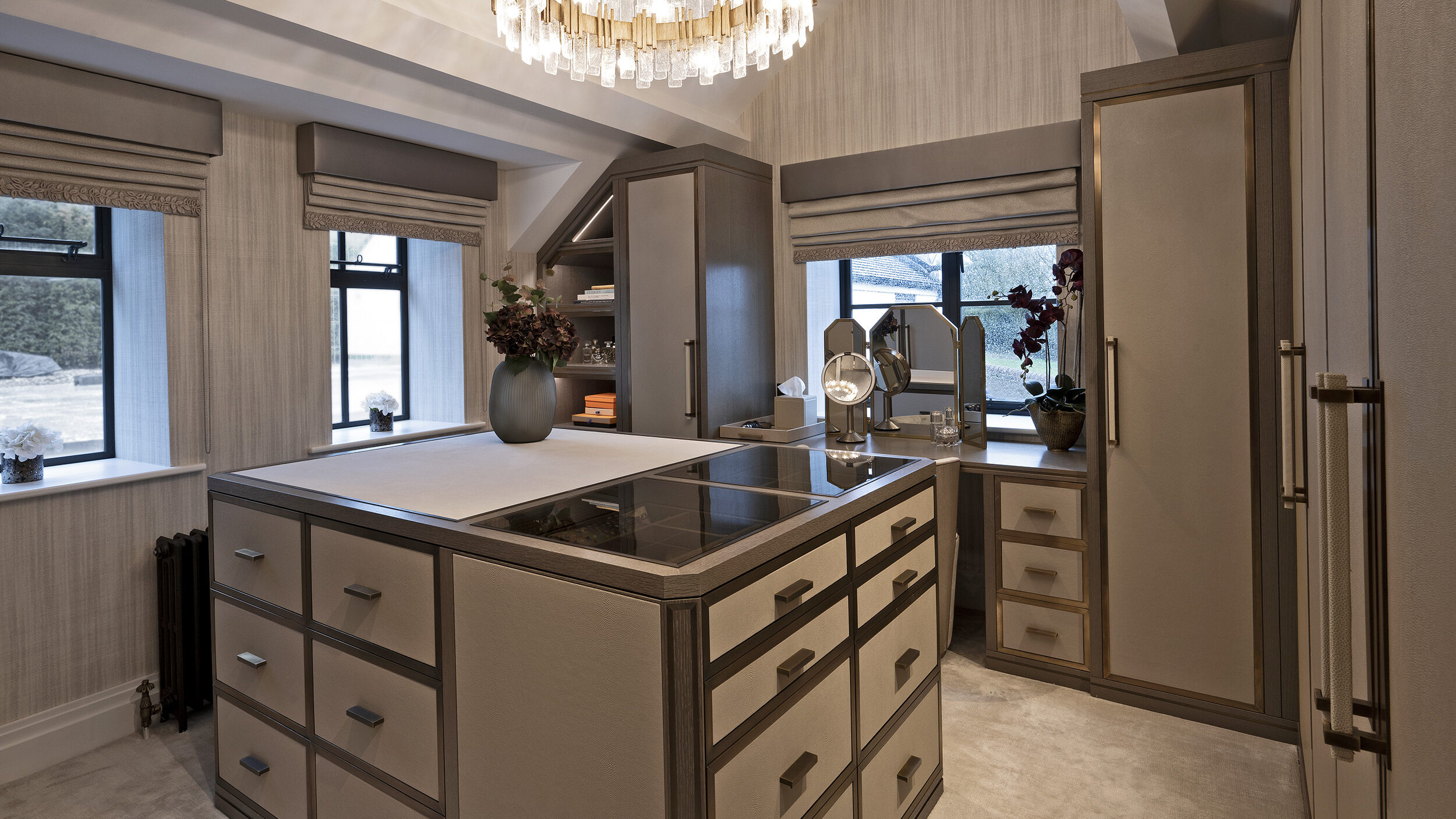 If space allows, we also look to integrate a dressing room island to provide extra drawer storage. It also acts as a display and preparation area which adds an impactful wow factor to a space.