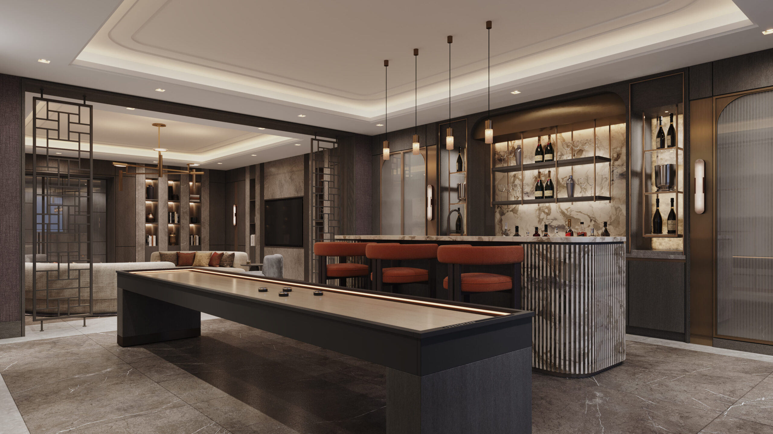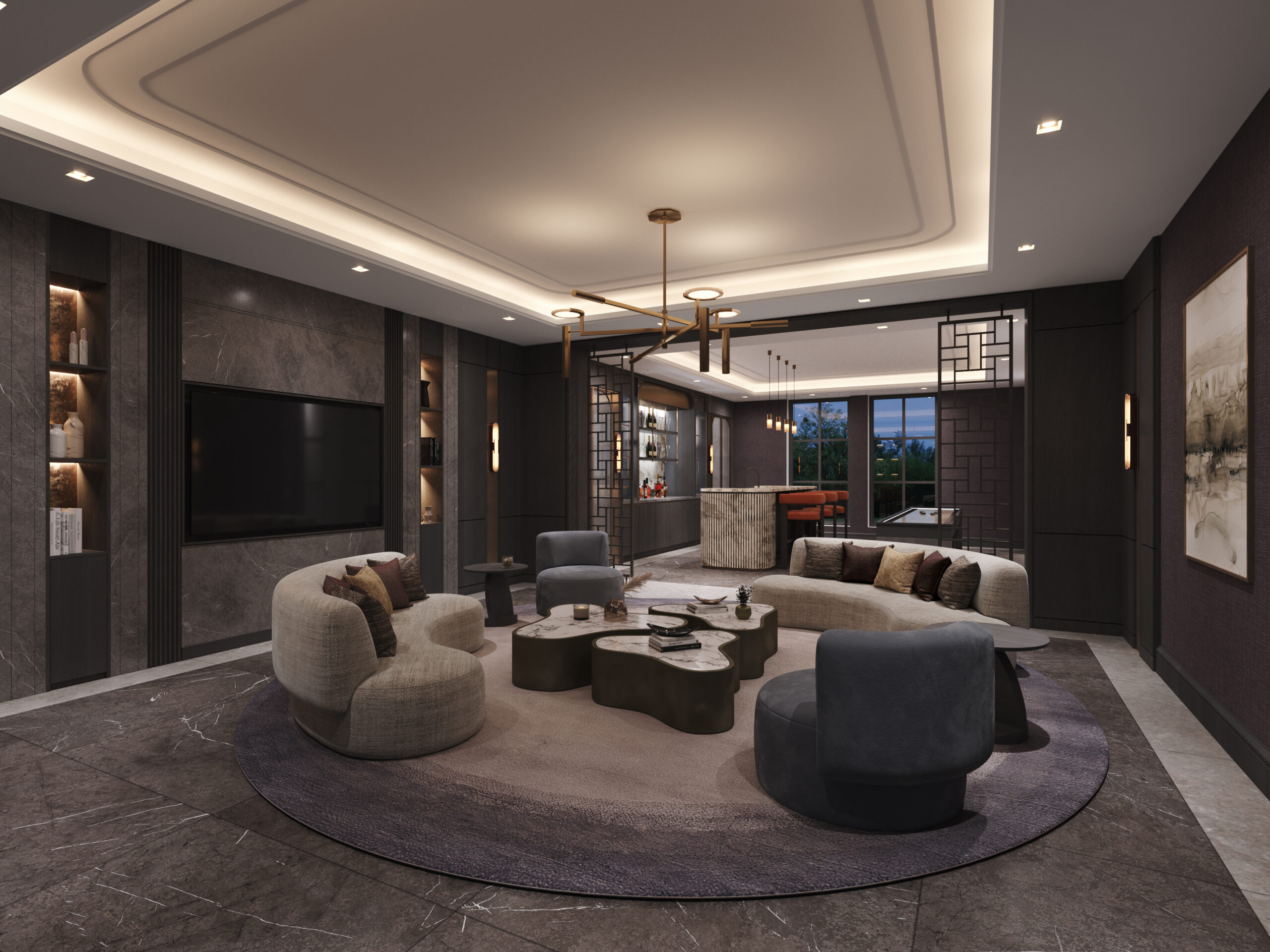 These spaces are often considered alongside a bar and sometimes a dance floor to create the ultimate entertainment suite.