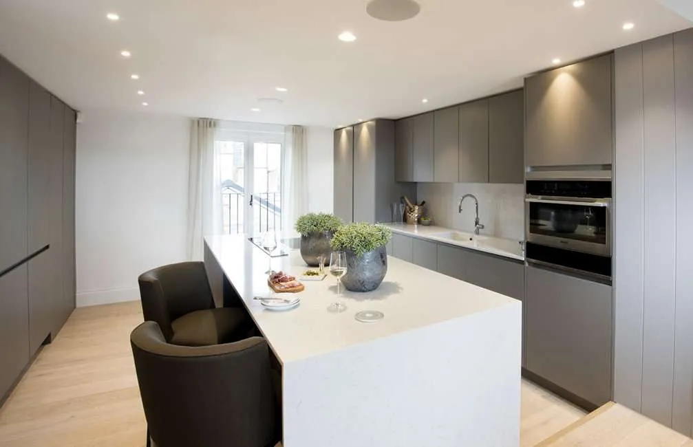 Materials such as quartz, marble and ceramics can also be incorporated to the worktops and splashbacks.