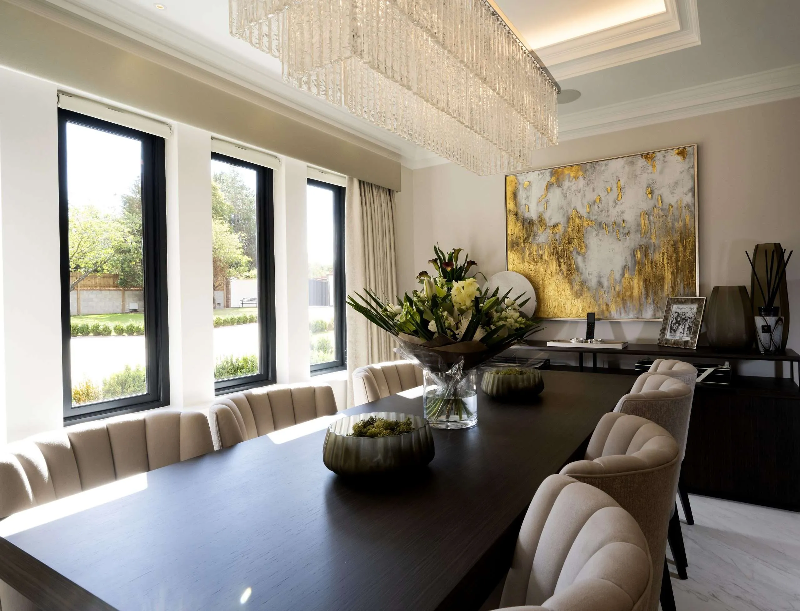 The style of this property exudes an elegantly refined Italian style, using layered minimalistic clean lines with earthy tones, soft brown leathers with strong cool marbles and ceramics.