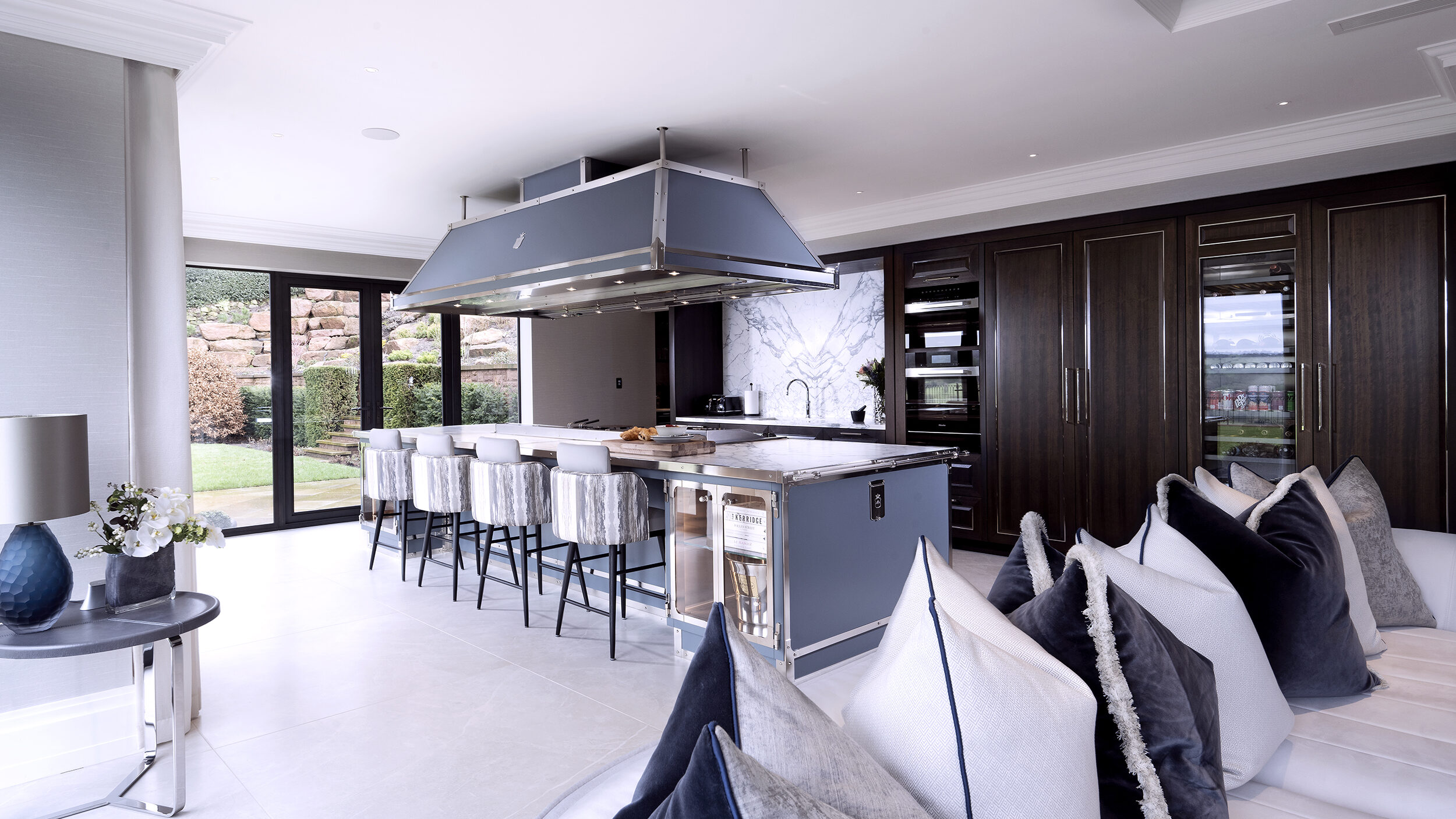 Things we consider when designing a bespoke kitchen – a large central bespoke kitchen island. This is often seen as a beautiful focal point in any luxury kitchen as well as holding an infinite amount of practical value.