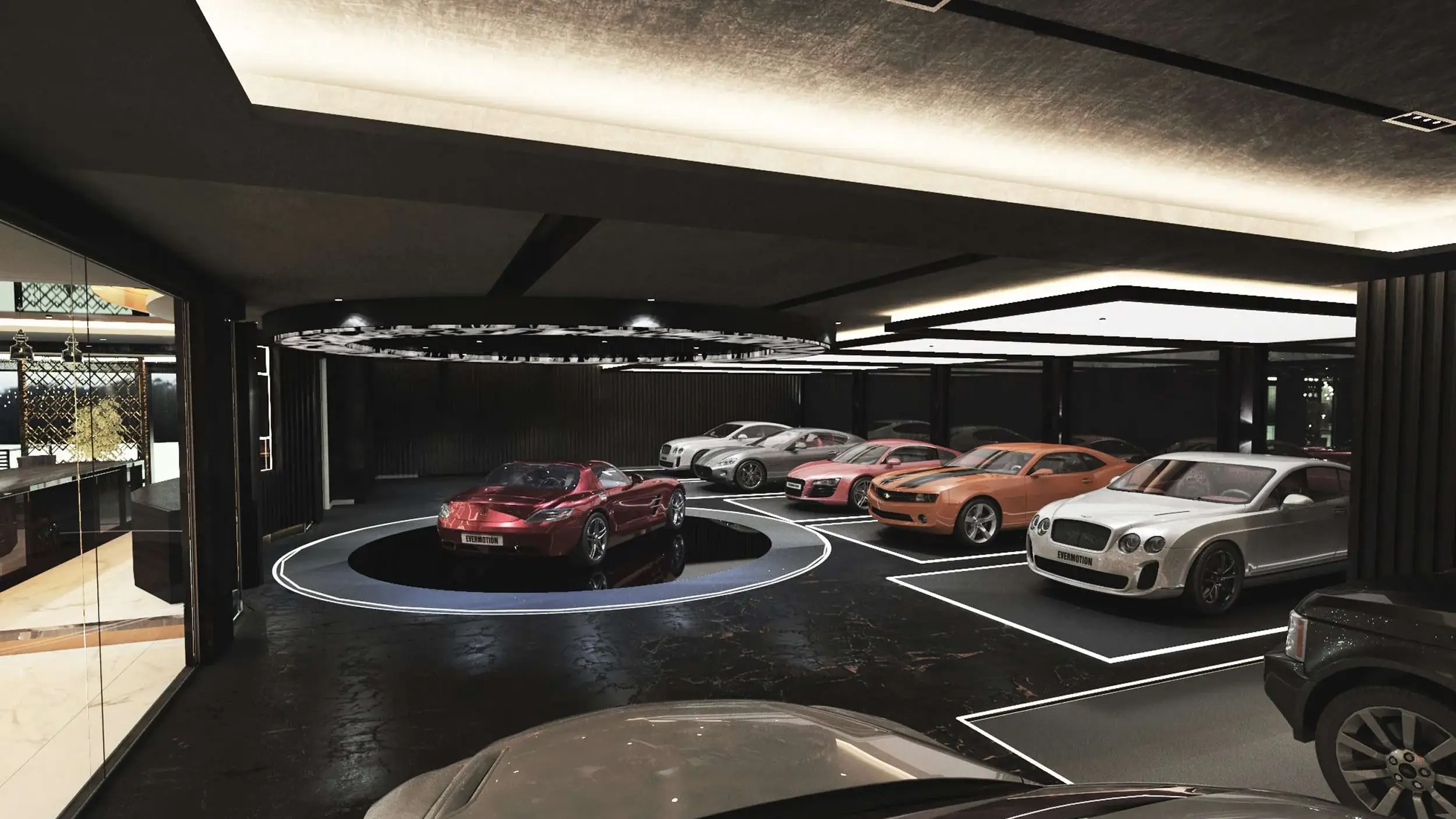 The demand for our rotating cylinder feature which we incorporate into our designs is ever increasing. This piece of equipment almost acts as a spinning podium allowing your car to slowly revolve in a trophy-like manner. Your vehicle will be dramatically highlighted beneath stunning lighting to reveal their sleek exterior in a true podium encasement. In person, this garage creates an impression that is truly jaw-dropping.