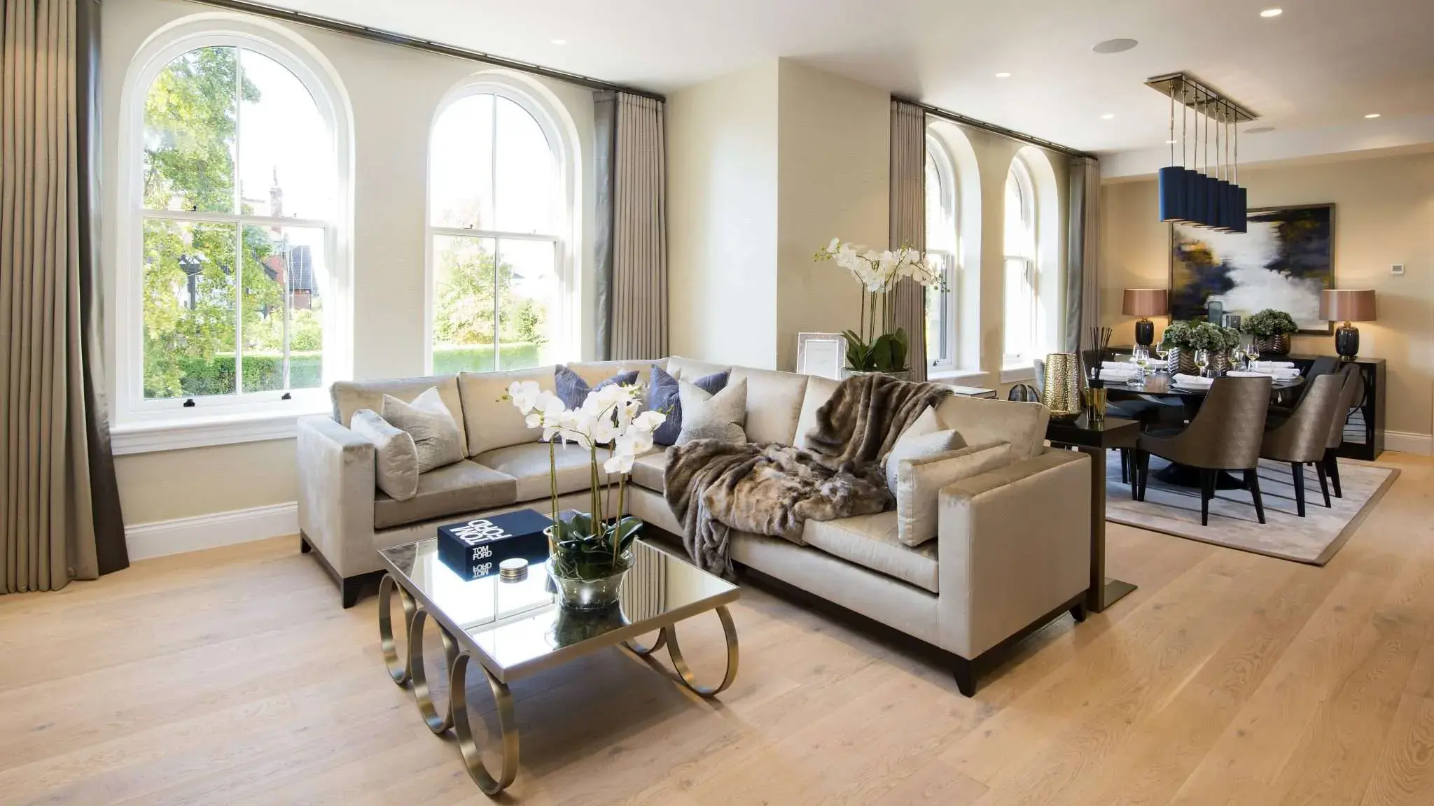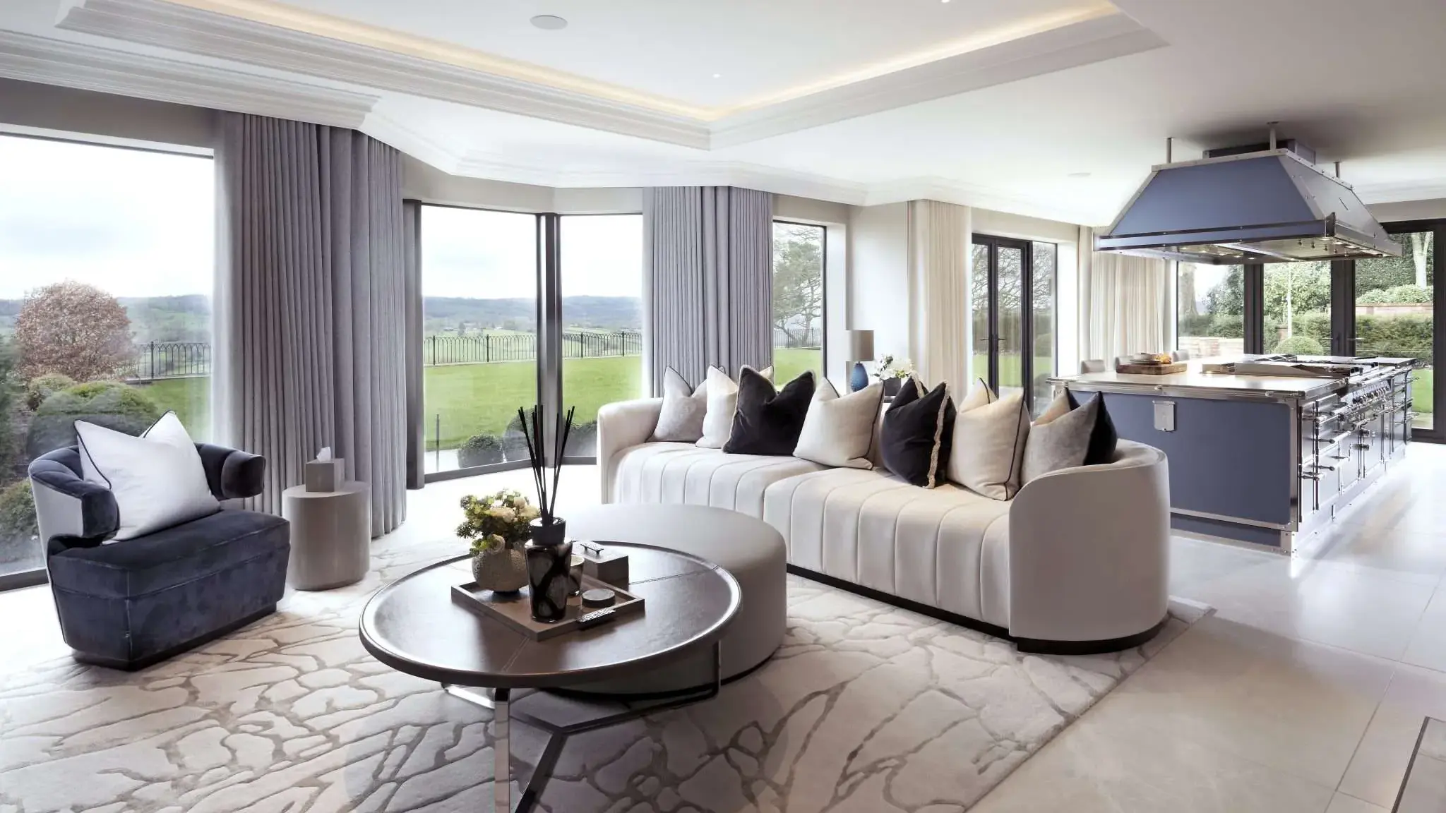 Scale really is the key to designing a breath-taking open plan layout. Furniture and lighting should be selected to reflect the scale of the living space.