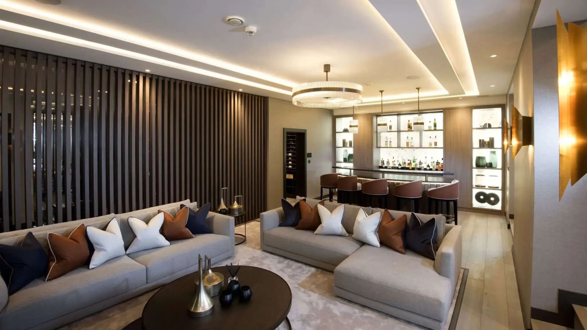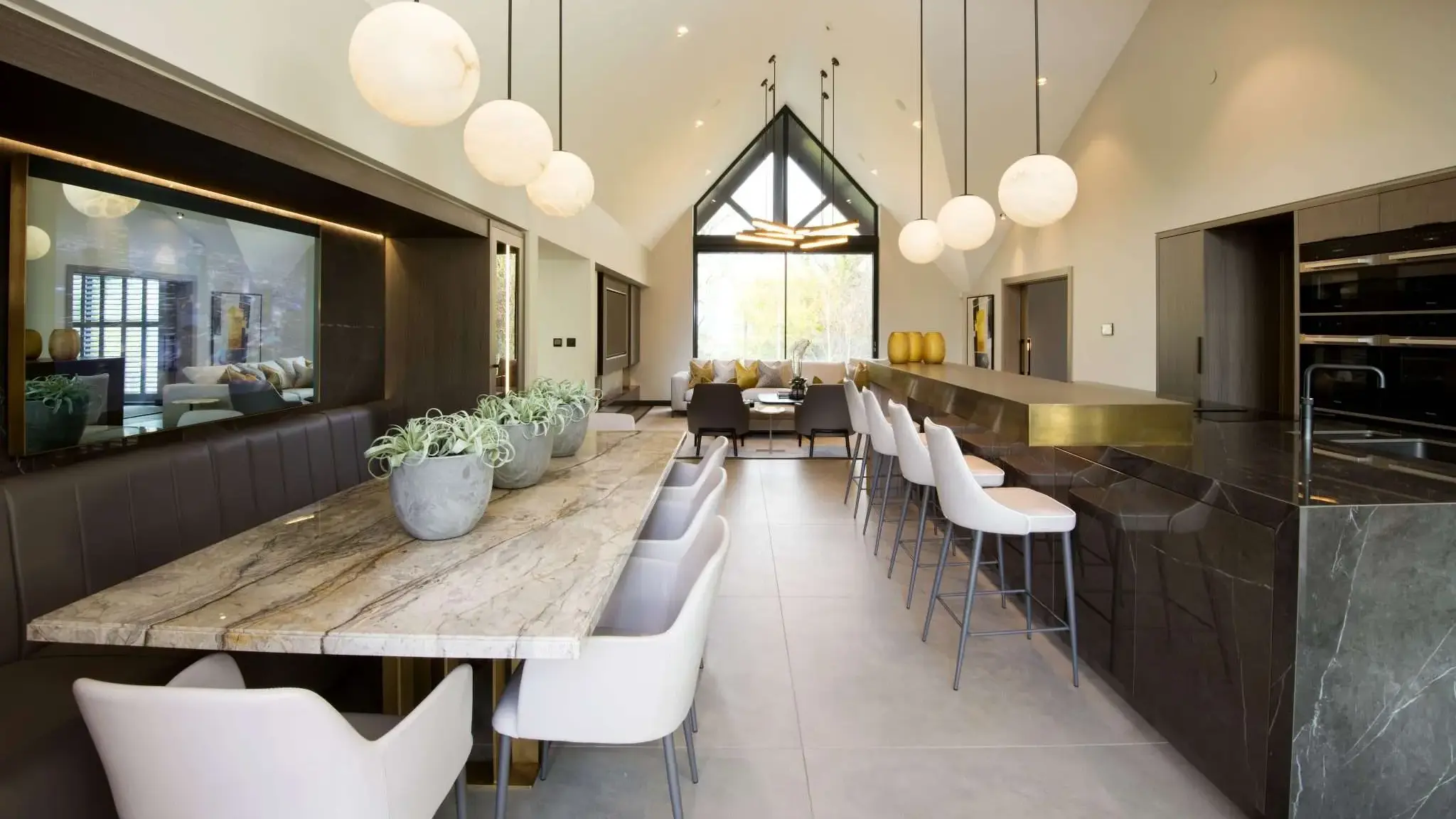 Bespoke cabinetry that spans the height of the room offers an excellent way to combine clever storage design with a beautiful aesthetic in open plan living areas.