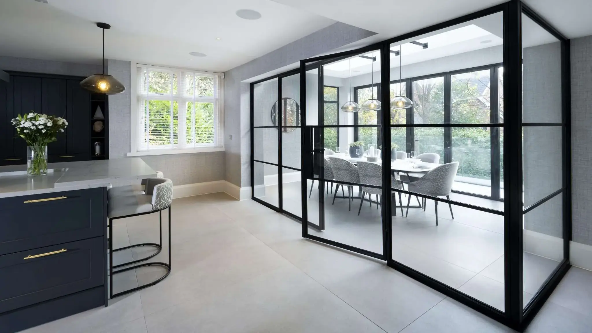 Take a look at our private residential project ALANDELL where crittall glass was utilised heavily in the open plan kitchen, lounge and dining area.