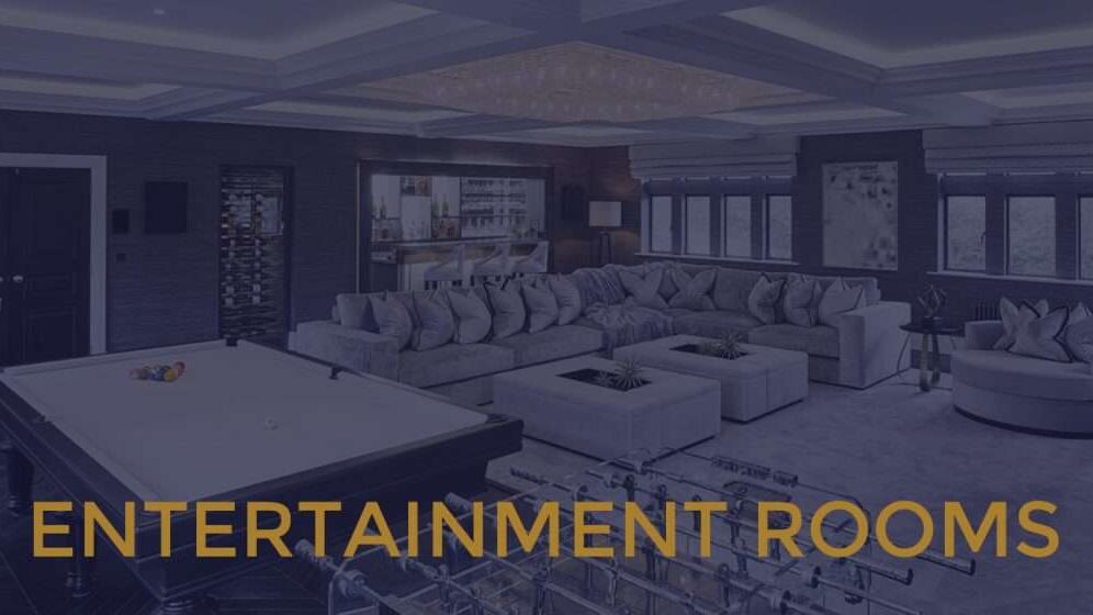 We have a wealth of experience in creating cosy and extravagant entertainment rooms, complete with bespoke wine cellars, colour co-ordinated snooker tables and comfortable home bars.