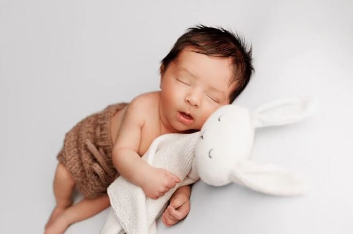 The main area of the studio exudes soft, organic comfort with its sculptural boucle curved sofa and warm, neutral palette. The glowing pendant lights cascade delicately overhead, adding a dreamy atmosphere. With portraits of newborns on the walls and natural light flooding in through black-framed glass doors, this space perfectly reflects the studio’s focus on capturing timeless, tender family moments in a refined yet approachable environment.