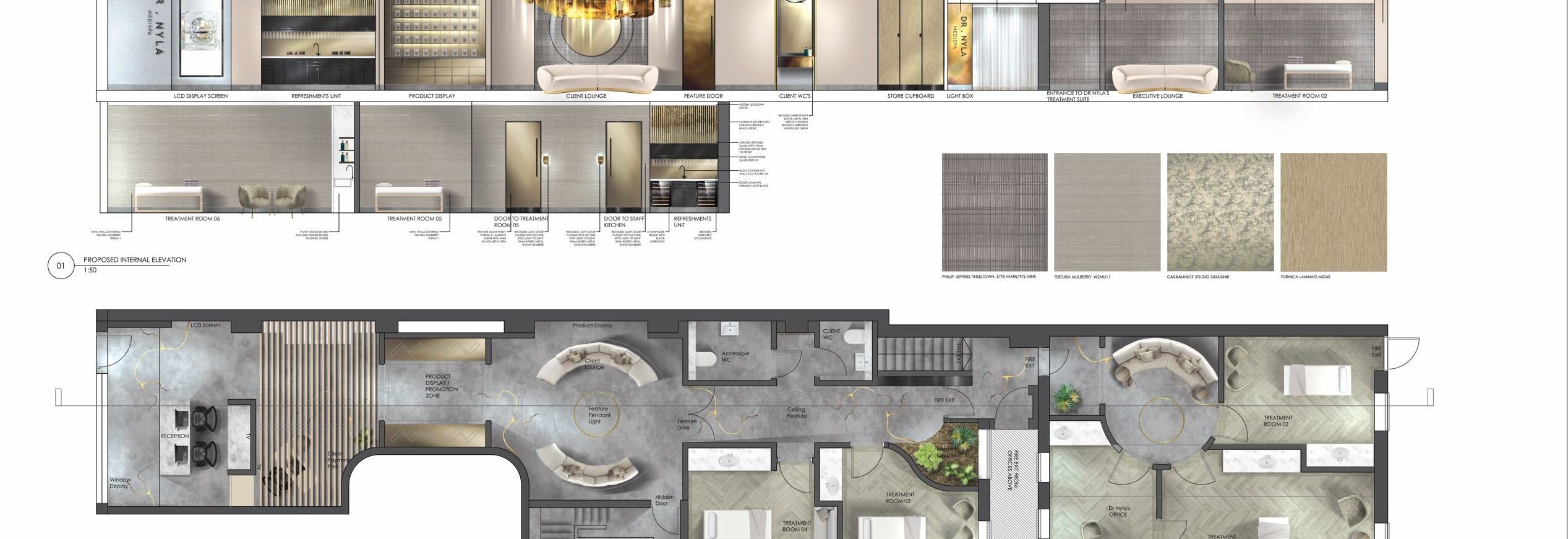 Dr. Nyla’s brand is synonymous with luxury, innovation, and exceptional client experiences, and we are thrilled to help her translate these values into the design of her Mayfair clinic. Our journey together in Alderley Edge and Liverpool has allowed us to deeply understand her commitment to creating spaces that blend clinical excellence with a sense of tranquility and opulence. The Mayfair clinic presents an opportunity to elevate this synergy further, tailoring the design to reflect the sophistication and exclusivity that defines the area.