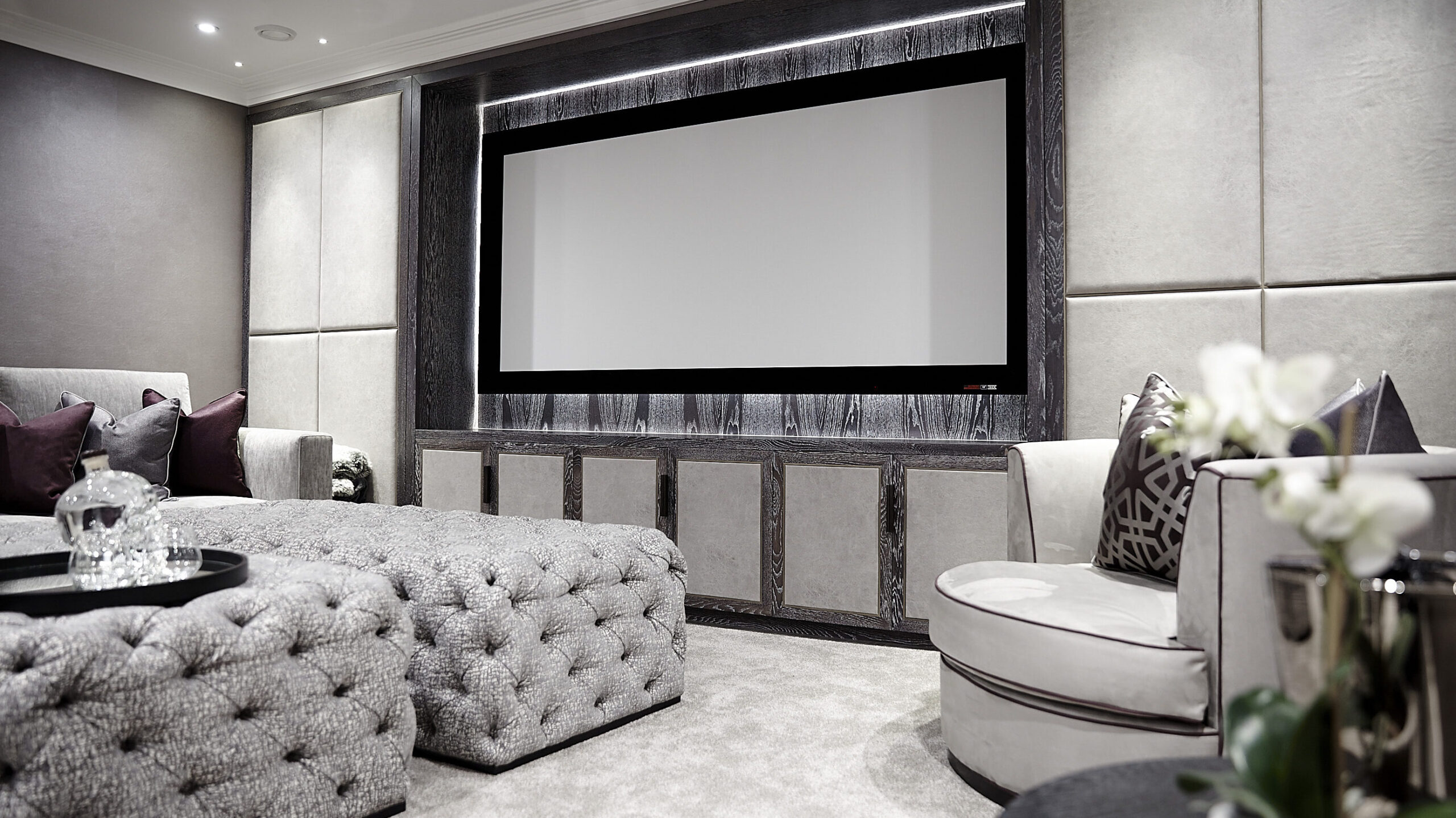 The brief involved us to reconfigure the unused basement space to create a glamorous media and entertainment area perfect for entertaining. A secondary brief was to restyle the property’s main lounge.