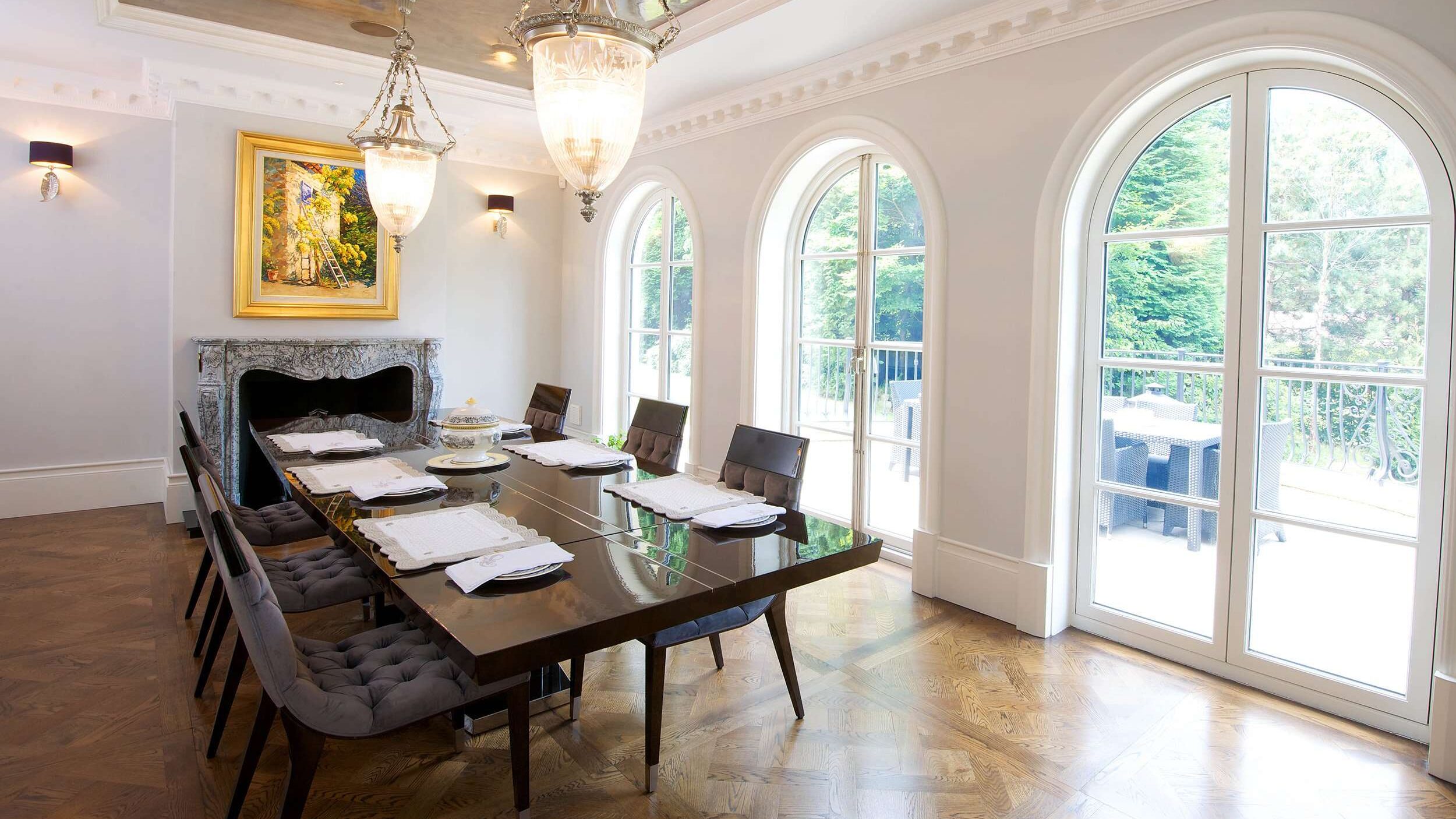 The main 10,500 sq ft main house consists of two levels to the front and three to the rear as the ground slopes away to include a stunning lower ground leisure suite which is basked in natural light to one side.