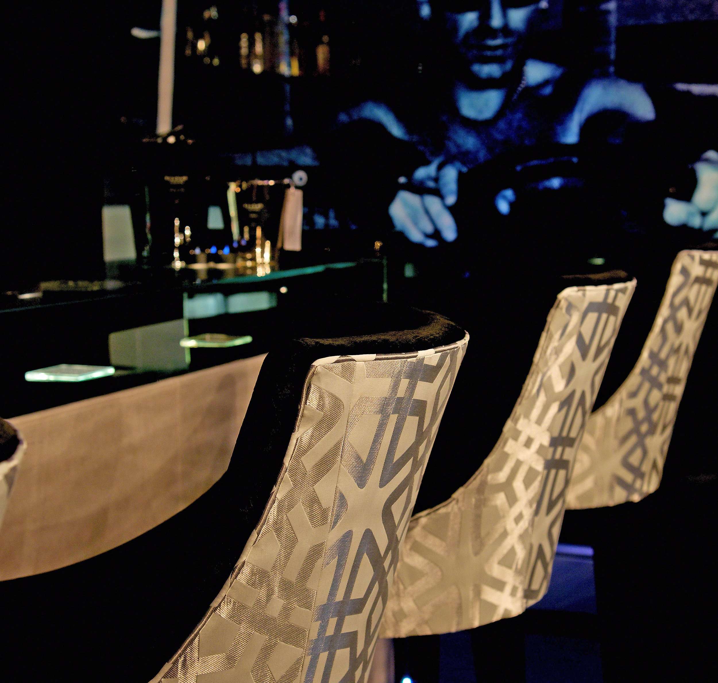 The design of the bar counter and back bar display draws guests into the central space, providing lavish comfort and all the ingredients of a perfect party night.