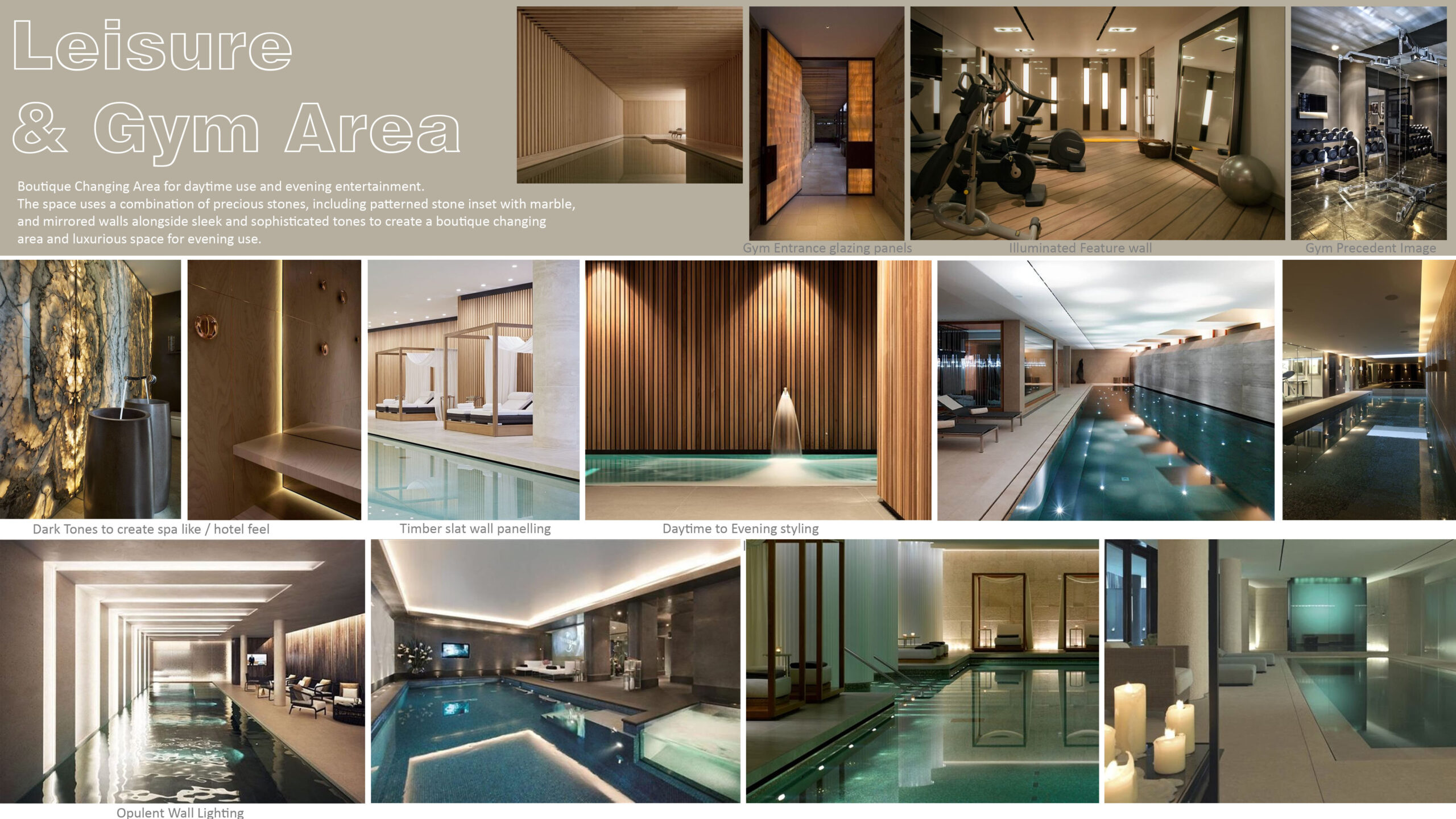 The pool itself features large format tiles which complement the coloured inset LED lighting allowing the tone of the space to be altered to fit the mood. Feature walls boast backlit semi-translucent stones which highlight reflections from the pool, bringing to mind an ethereal, underwater world. Continuing the journey through the space, the gym, sauna and steam room are styled in a similar vein.