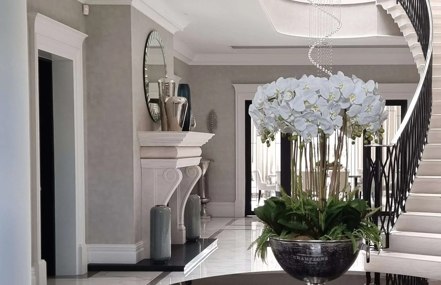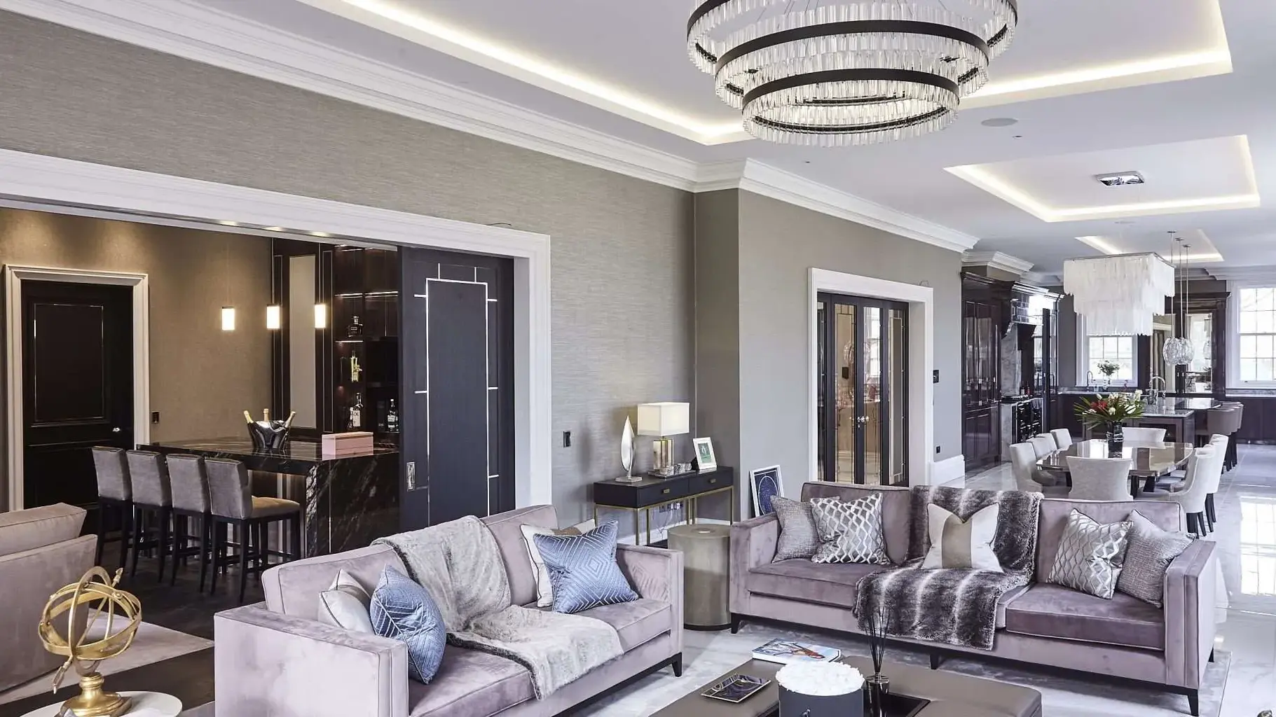 Grand ceilings were shaped and detailed by us to maximise the effect of the large rooms, as well as the use of uncluttered lighting solutions that relied more on decorative lighting which creates a great impact.