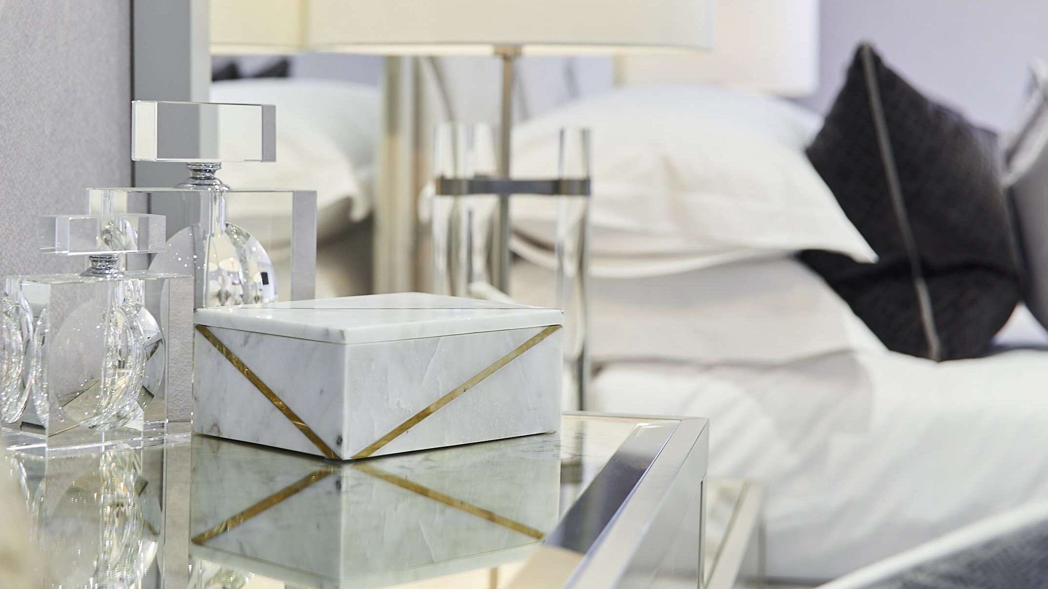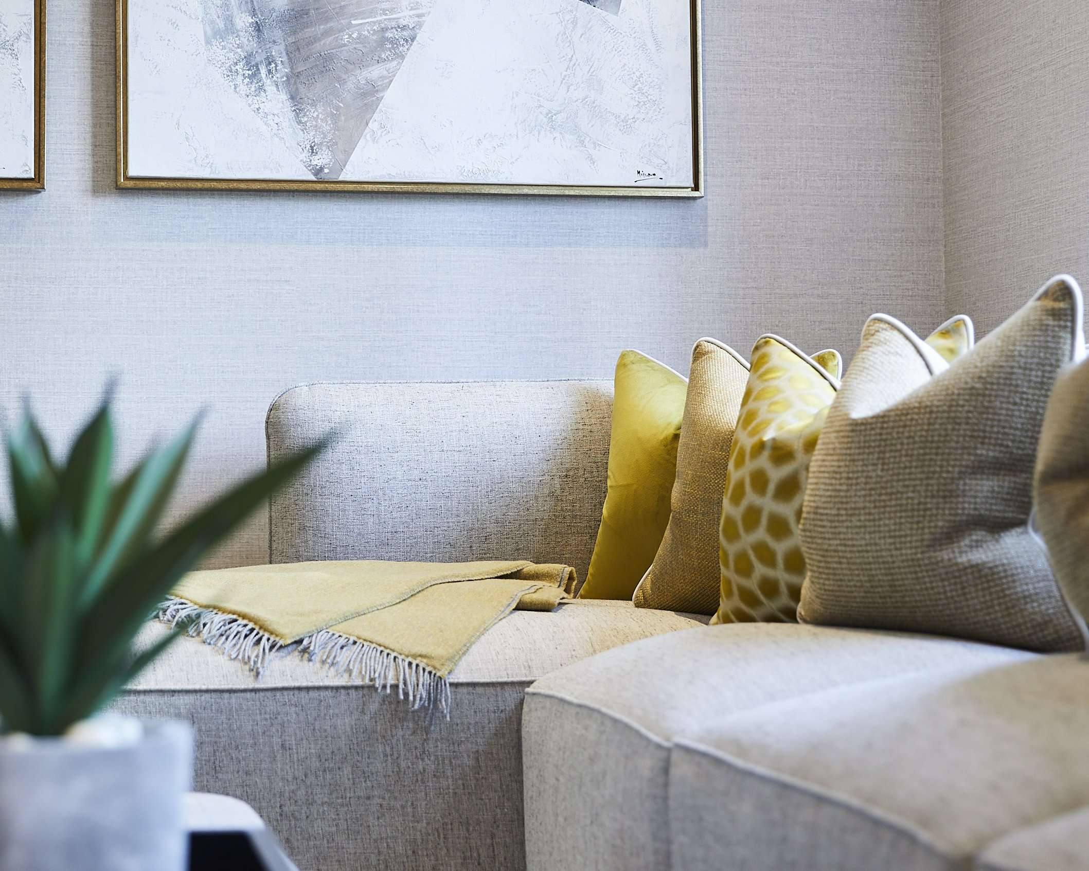 A base palette of silver and grey tones reinforces the feeling of tranquillity whilst infusions of colour are added with the soft furnishings and accessories. Exceptional finishes and feature lighting, sumptuous fabrics and high gloss timbers add an air of sophistication.