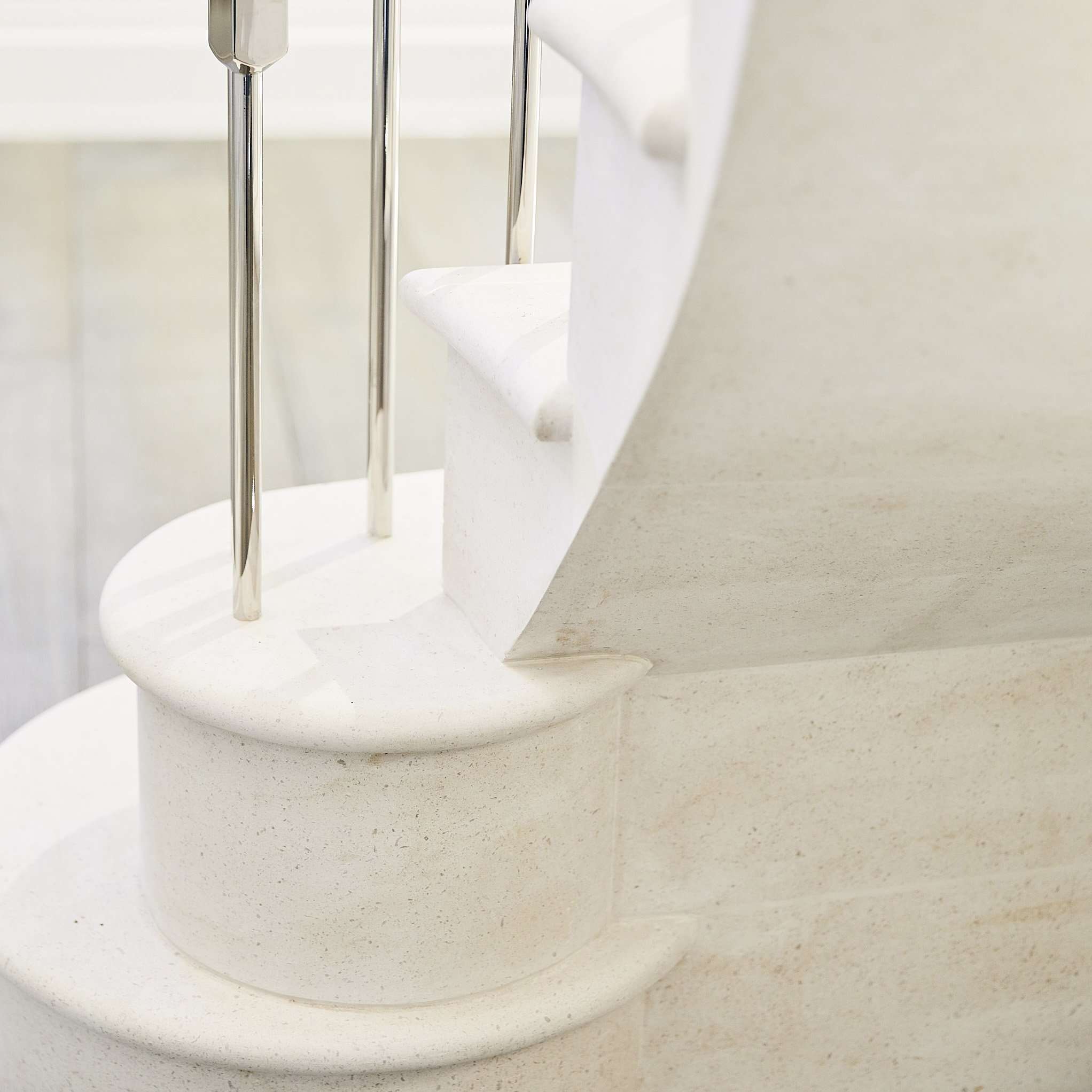 The entrance hall has been completely transformed from an awkward central wooden staircase into a new statement sweeping stair case. Featuring polished limestone, lustrous nickel balustrading and a dark stained timber handrail.