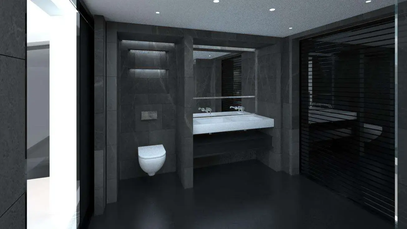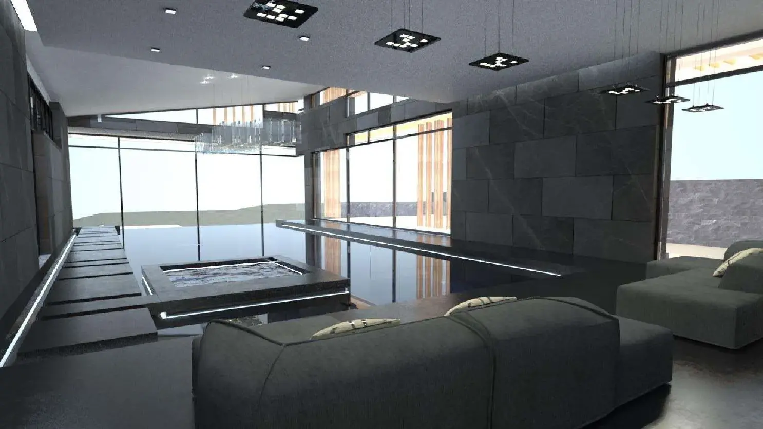 The sunken lounge within the hall introduced a sense of entertainment and a wonderful central vista of the outside terracing and water features. Flanked either side by a large dining room and state of the art kitchen with the backdrop being an elliptical staircase, wrapped in polished plaster.