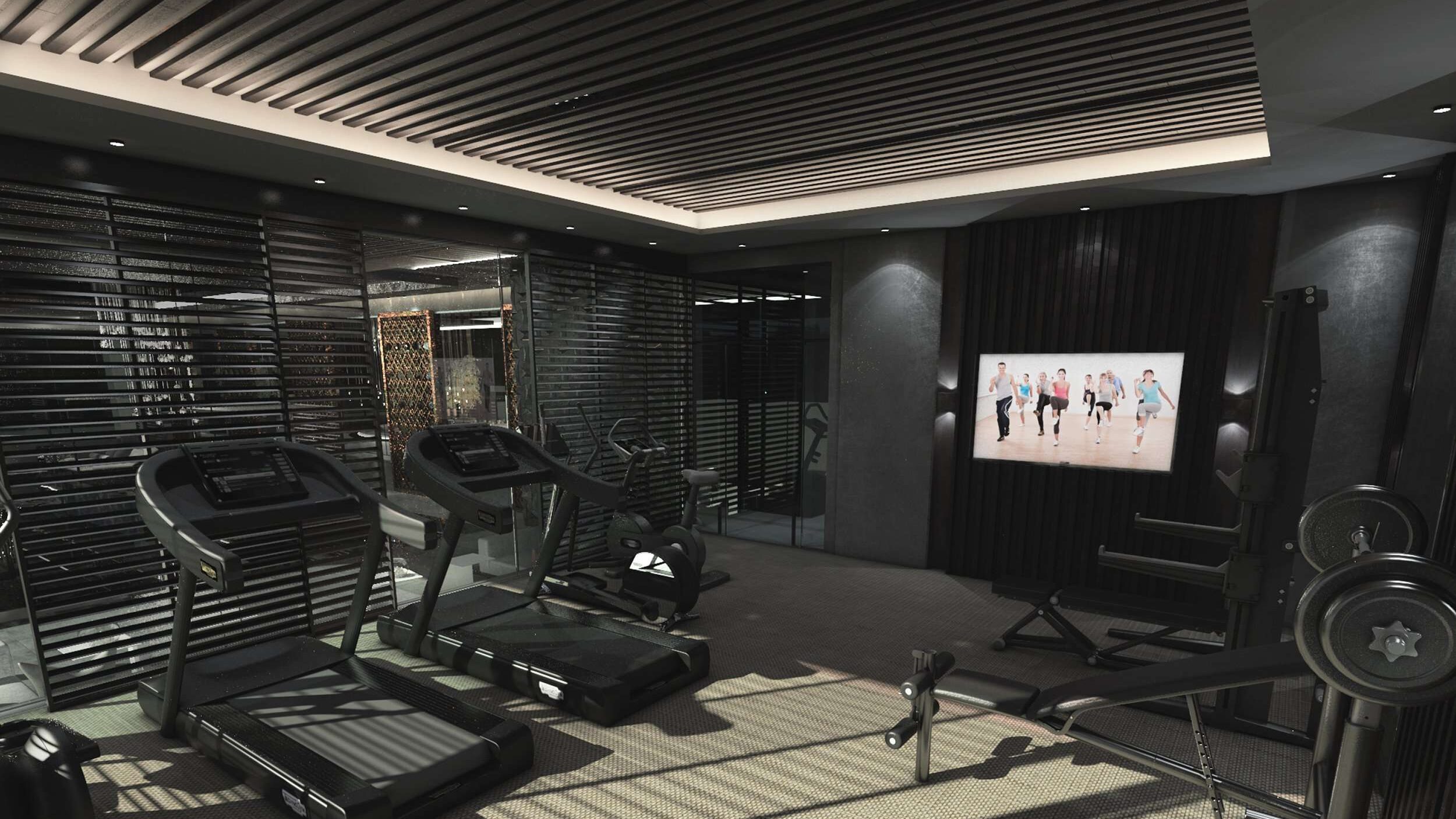 The rest of the wellness space – the gym, sauna, steam room and massage rooms are all designed to a similar spec.
